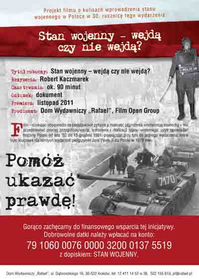 Projekt filmu o kulisach w prowadzenia stanu wojennego w Polsce w 30. rocznicę tego wydarzenia:
