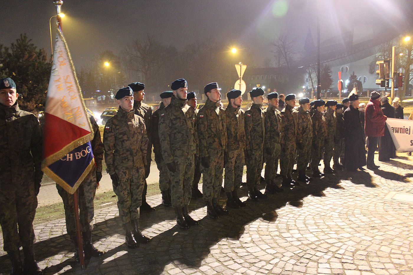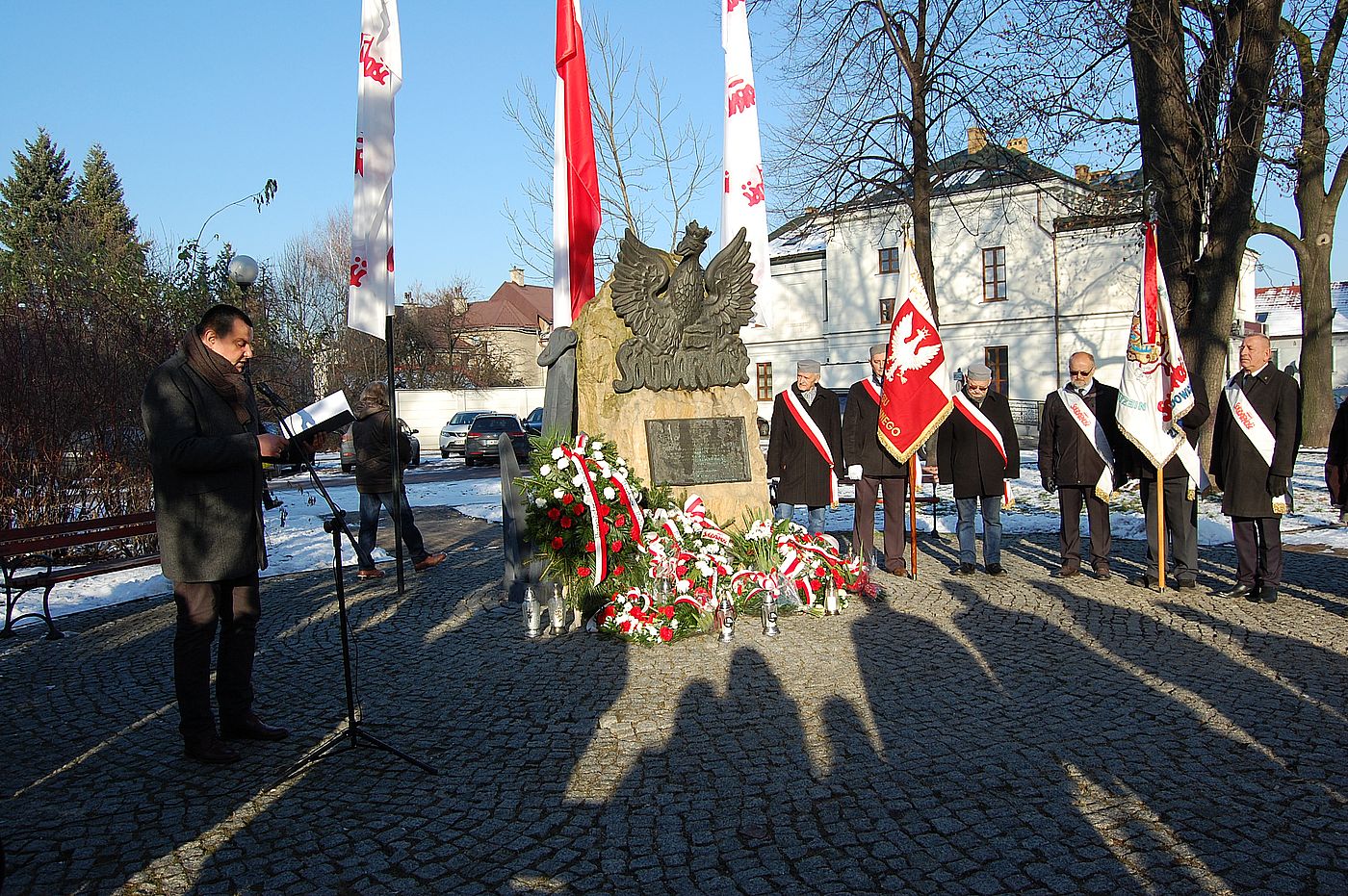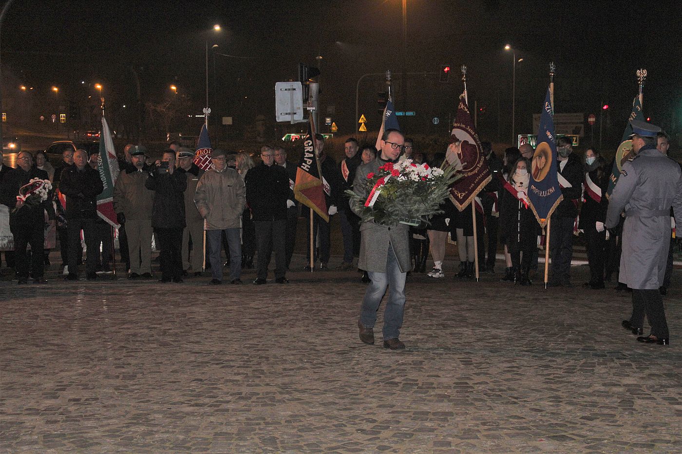 17.30 – przemówienia, złożenie kwiatów i zapalenie zniczy pod Krzyżem Katyńskim