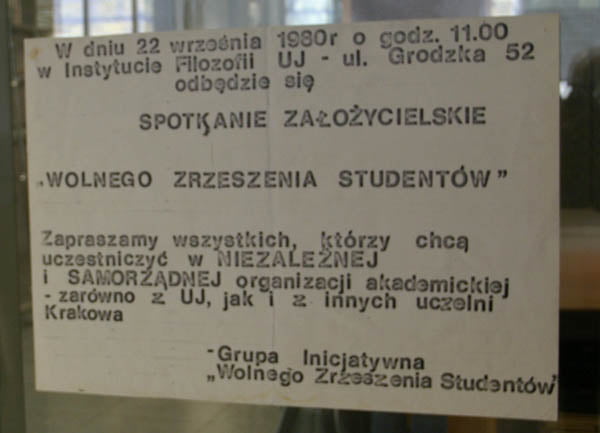 Pierwszy plakat wywieszony na Politechnice przez NZS PK na przełomie września i października zawierał hasło, którego autorem był przywódca trójmiejskiej „Solidarności” Andrzej Gwiazda: „ Nie chcemy transfuzji nowej krwi w starym organizmie – chcemy nowego organizmu”.