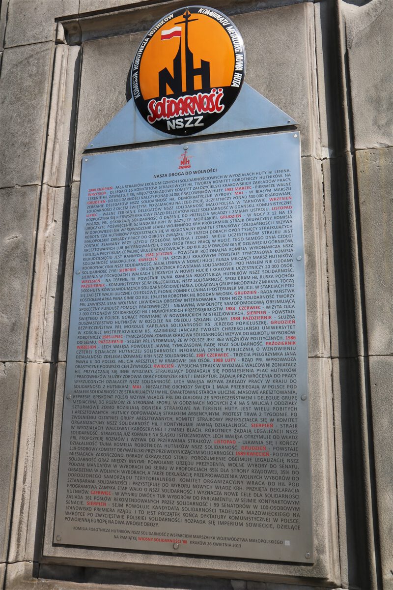 WIOSNA SOLIDARNOŚCI ’88 – strajki w Nowej Hucie. 35 rocznica strajków kwietniowo-majowych 1988 r. w Hucie im. Lenina Składanie wieńców, wiązanek pod pomnikami związanymi z historią Solidarności w Krakowie Kraków Nowa Huta, 28 kwietnia 2023 r. Pomnik Solidarności „Bądź wierny, idź” w Krakowie Nowej Hucie, Plac Centralny Tablica Tajnej Komisji Robotniczej Hutników Kraków Nowa Huta, osiedle Centrum B Pomnik Bogdana Włosika i innych ofiar stanu wojennego Kraków Nowa Huta, osiedle Przy Arce Pomnik Prasy Podziemnej, zwany Pomnikiem Drukarzy Kraków Nowa Huta, osiedle Szklane Domy Kraków Nowa Huta, osiedle Szklane Domy Tablica poświęcona Komisji Robotniczej Hutników NSZZ Solidarność Kraków Nowa Huta.
