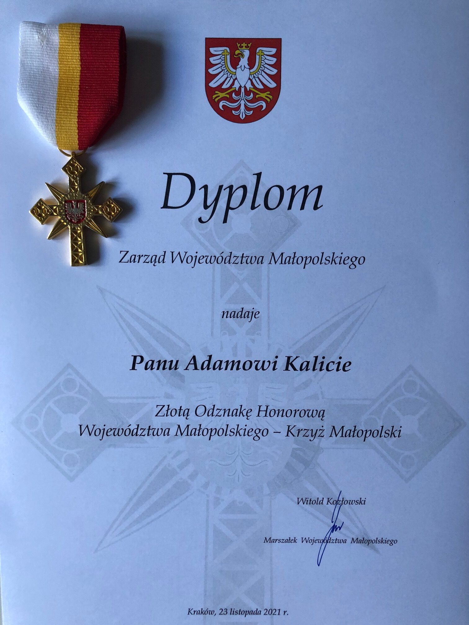 Wśród nagrodzonych znalazł się Adam Kalita, członek Stowarzyszenia NZS 1980, który otrzymał Złotą Odznakę Honorową Województwa Małopolskiego – Krzyż Małopolski.