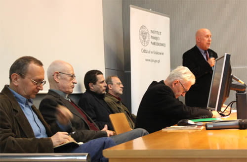 | od lewej strony: Bronisław Maj, o. Jan Andrzej Kłoczowski, o. Adam Boniecki, Bronisław Wildstein Tadeusz Nyczek i Marek Lasota |