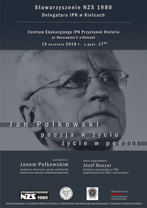Stowarzyszenie NZS 1980, jako organizator, zaprasza 19 września 2018 r. na spotkanie z Janem Polkowskim w Kielcach.