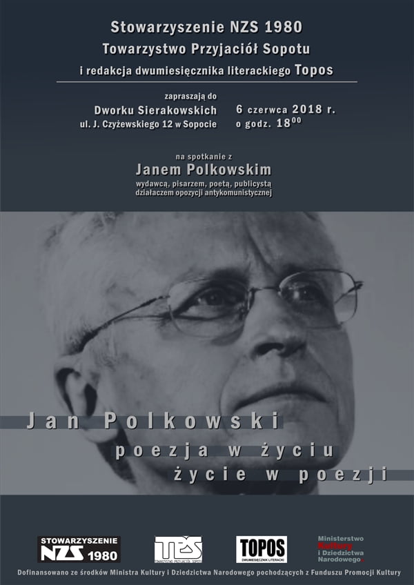 Stowarzyszenie NZS 1980, jako współorganizator, zaprasza 6 czerwca 2018 r. na spotkanie z Janem Polkowskim w Sopocie.