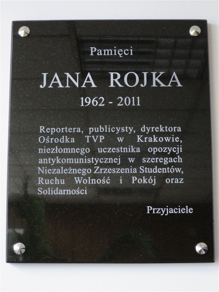 18 lipca 2015 r. z inicjatywy przyjaciół w budynku TVP Kraków na Krzemionkach odsłonięto tablicę pamiątkową poświęconą zmarłemu dyrektorowi ośrodka Telewizji Kraków Janowi Rojkowi. Był związany z Ruchem Wolność i Pokój, Niezależnym Zrzeszeniem Studentów, nowohucką Solidarnością. Działał w antykomunistycznej opozycji. Zmarł w wieku 49 lat. Następnie, po odprawieniu mszy w kościele o. Salezjanów przy ulicy Tynieckiej, spotkaliśmy się na grillu.