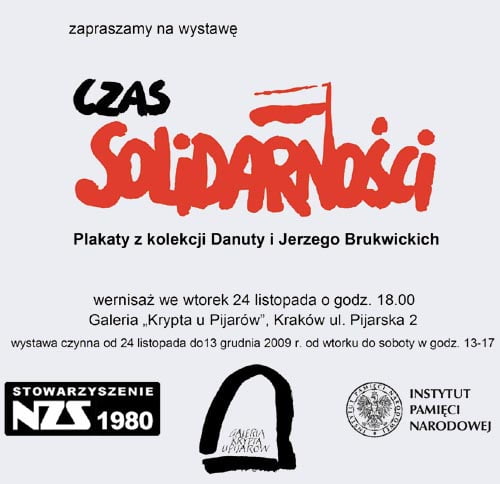 W imieniu Stowarzyszenie NZS 1980 zapraszam na otwarcie wystawy w dniu 24 listopada 2009 roku o godz. 18 w Galerii „Krypta u Pijarów”, Kraków, ul. Pijarska 2. Adam Kalita
