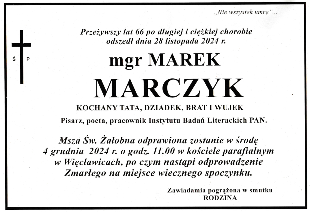 28 listopada 2024 r. zmarł Marek Marczyk, działacz NZS w latach 1980-1981.